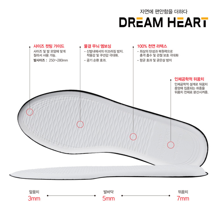 드림하트 100% 천연 라텍스 깔창 [슬림타입] 남성