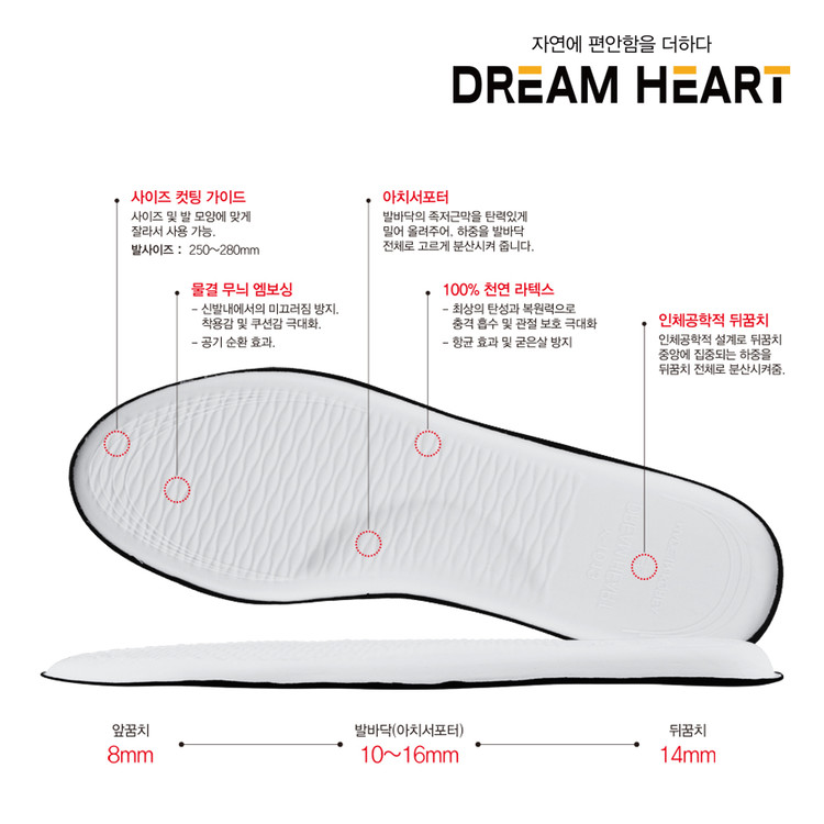드림하트 100% 천연 라텍스 깔창 [더블타입] 남성용